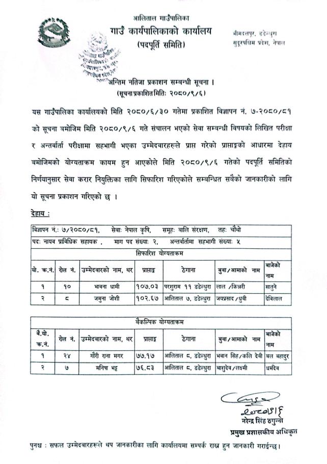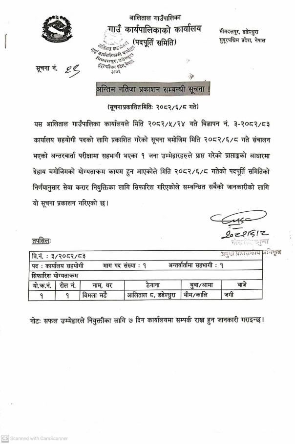 अन्तिम नतिजा प्रकाशन सम्बन्धि सूचना