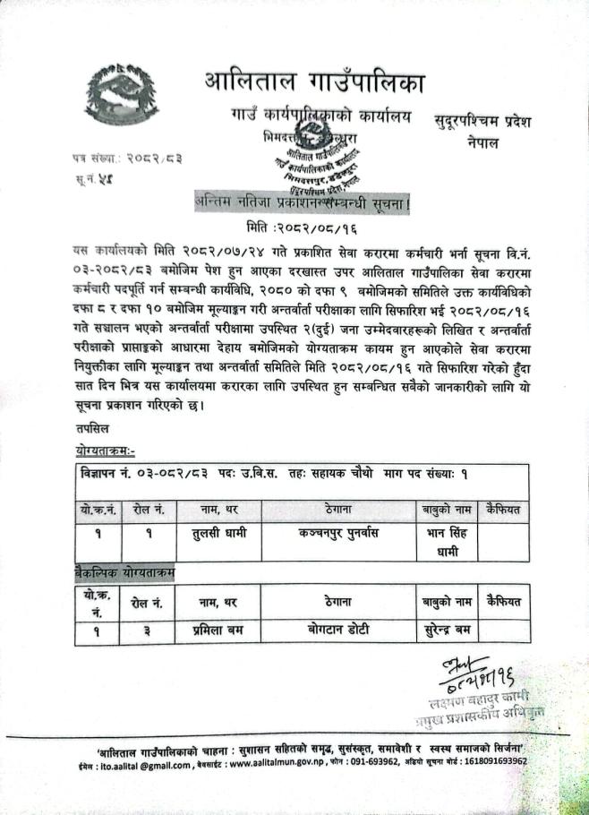 अन्तिम नतिजा प्रकासन गरिएको बारे