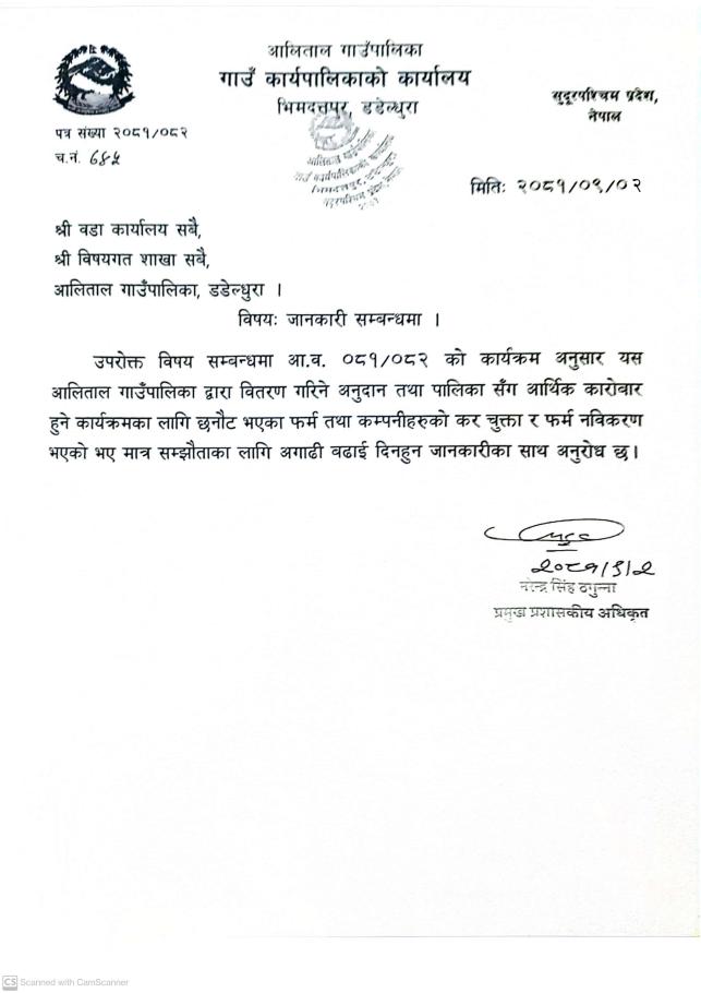 आलिताल गाउँपालिकाको प्रशासकीय कार्यविधि (नियमित गर्ने) ऐन, २०७५