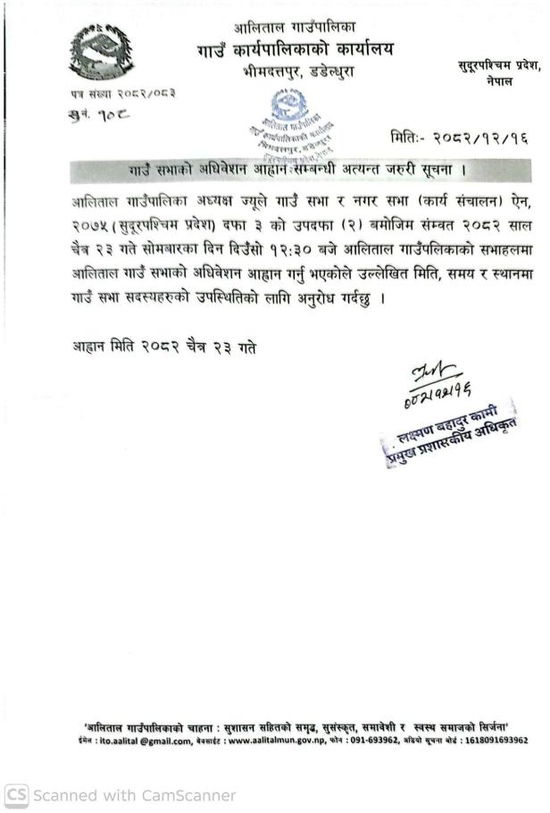 गाउँसभाको विशेष बैठक आब्हान सम्बन्धि सुचना