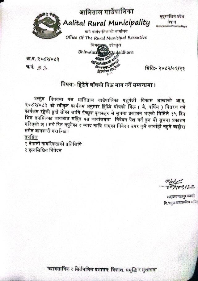 घाँसको बिउ माग गर्ने सूचना सम्बन्धमा
