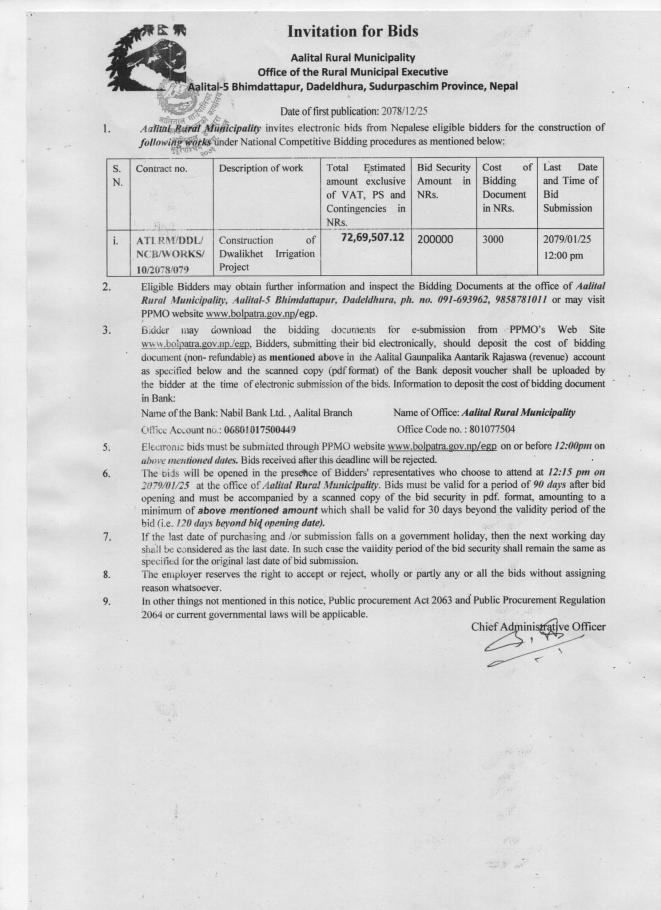 Inivitation for bid 2078