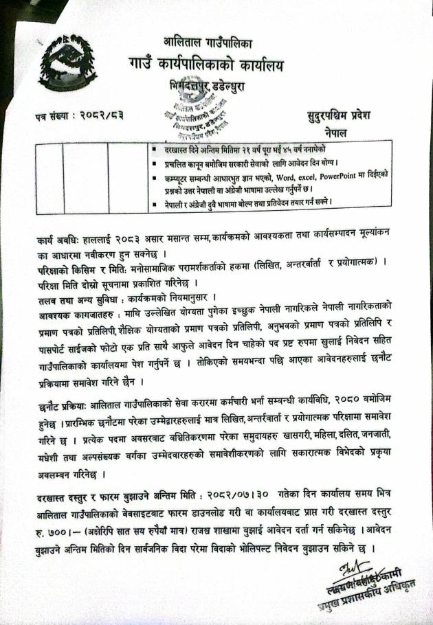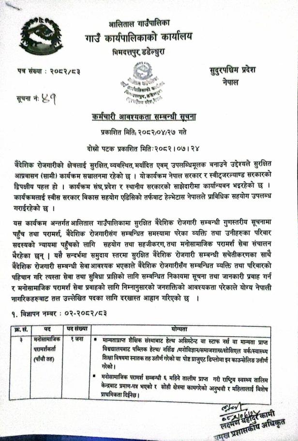 कर्मचारी आवस्यकता सम्बन्धी सूचना