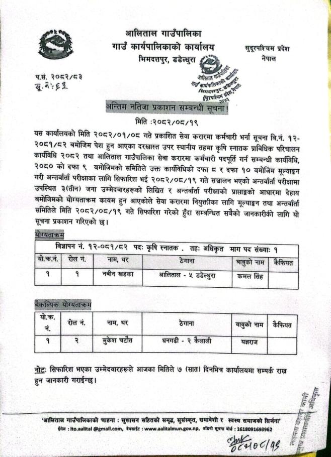 कृषि स्नातक र ना प्रा स पदको अन्तिम नतिजा प्रकासन सम्बन्धमा