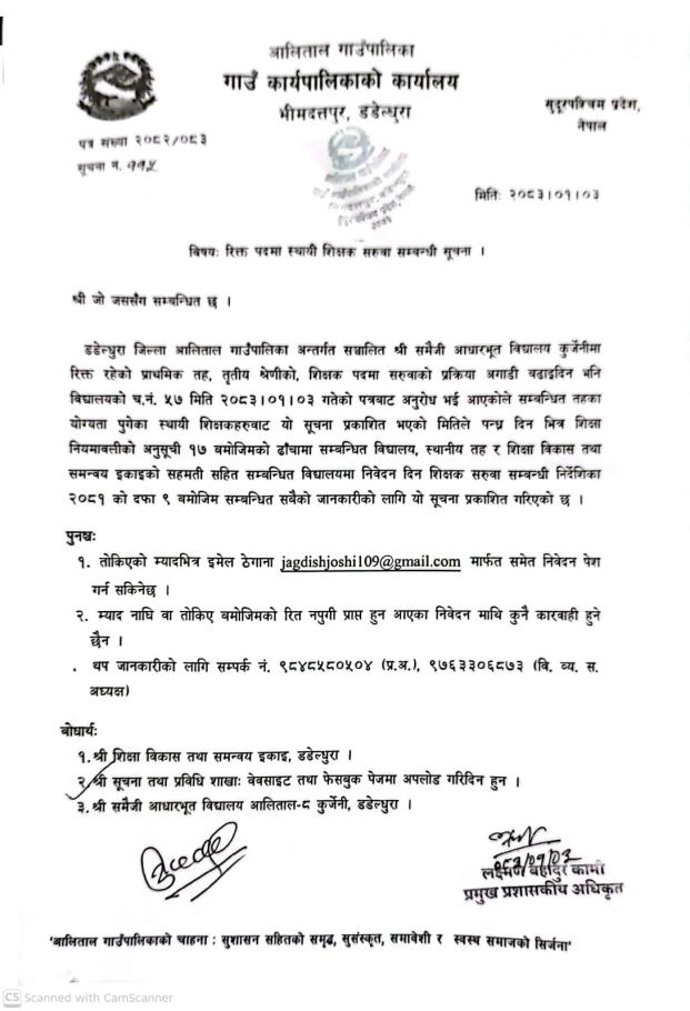 रिक्त पदमा शिक्षक सरुवा सम्बन्धि सुचना