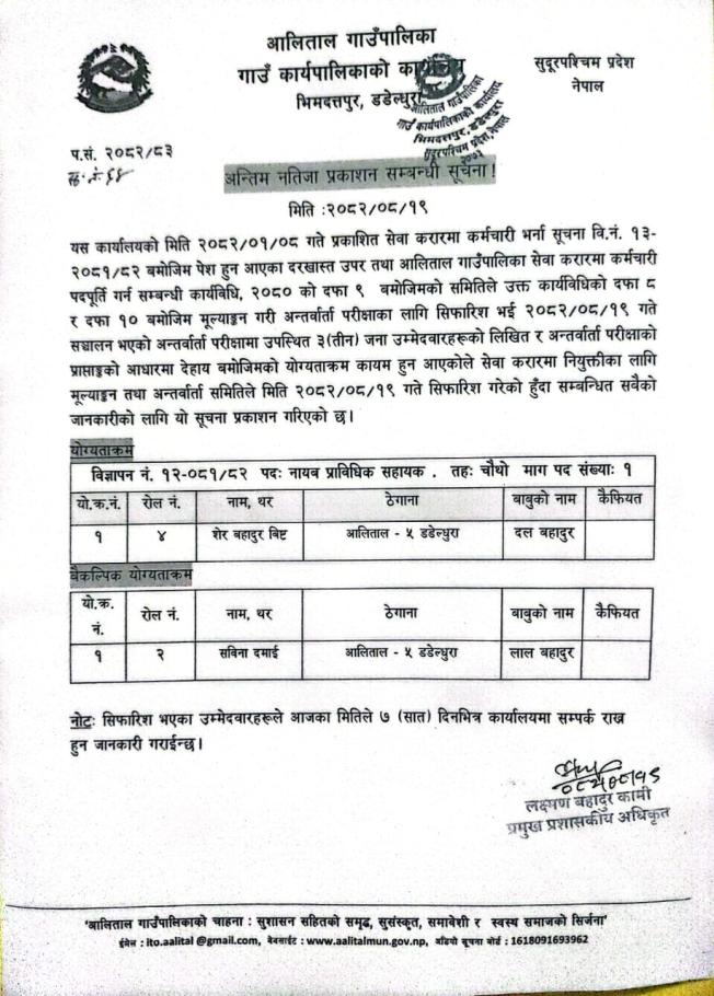 कृषि स्नातक र ना प्रा स पदको अन्तिम नतिजा प्रकासन सम्बन्धमा