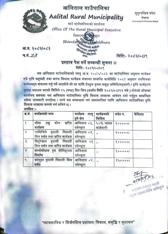 प्रस्ताव पेश गर्ने मिति सच्याईएको बारे