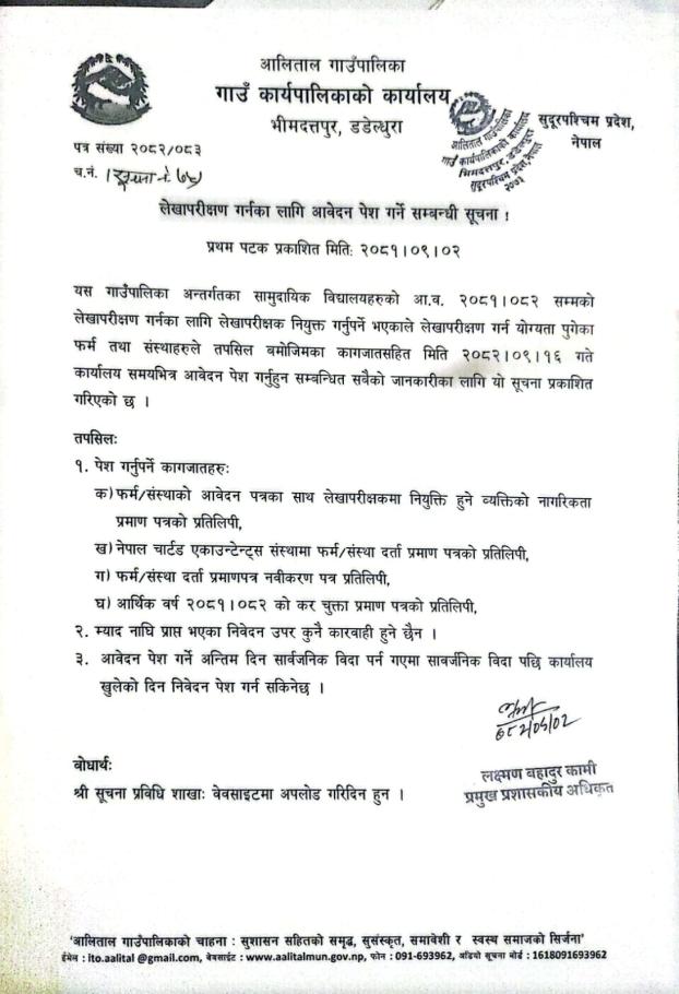लेखा परिक्षणको लागि निबेदन पेश गर्ने सम्बन्धि सुचना
