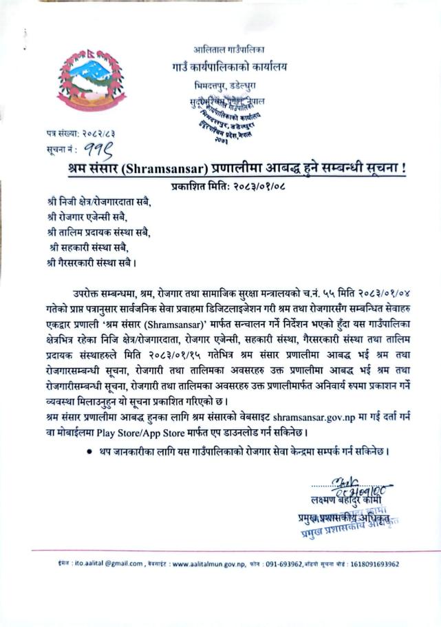 श्रमसंसार प्रणालीमा आबद्ध हुने बारे सुचना